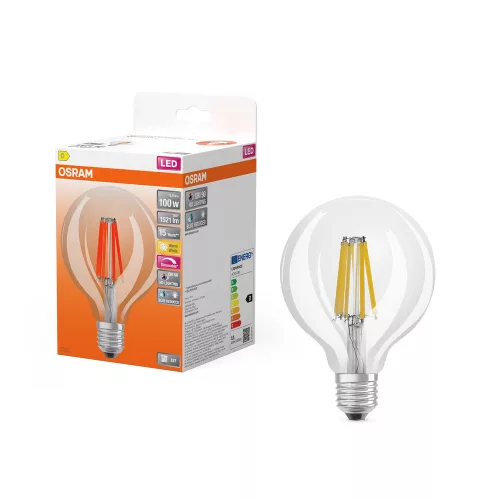 LED izzó G95 gömb alakú E27 11W = 100W 1521lm Meleg 2700K Meleg CRI90 300° Izzószálas, szabályozható fényerejű SUPERSTAR PLUS CLASSIC Osram