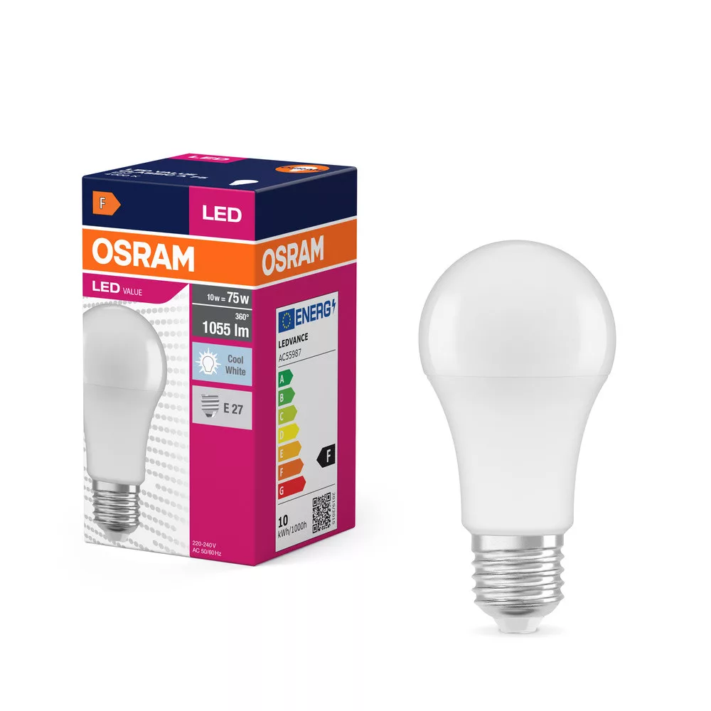 LED izzó A60 E27 10W = 75W 1055lm 4000K Semleges 150° VALUE CLASSIC Osram