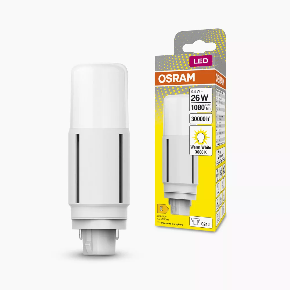 LED fénycső, egyoldalas, G24d, 9,5 W = 26 W, 1080 lm, 3000 K, meleg, 300°, DULUX LED D VT EM és AC, Osram