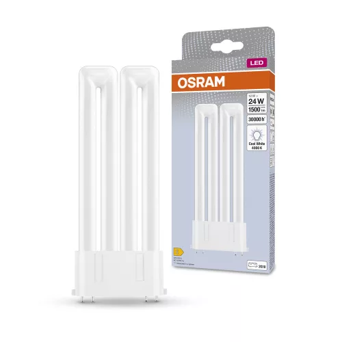 LED fénycső, egyoldalas, 2G10, 12W = 24W, 1500lm, 4000K, semleges, 130°, DULUX LED F EM és AC, Osram
