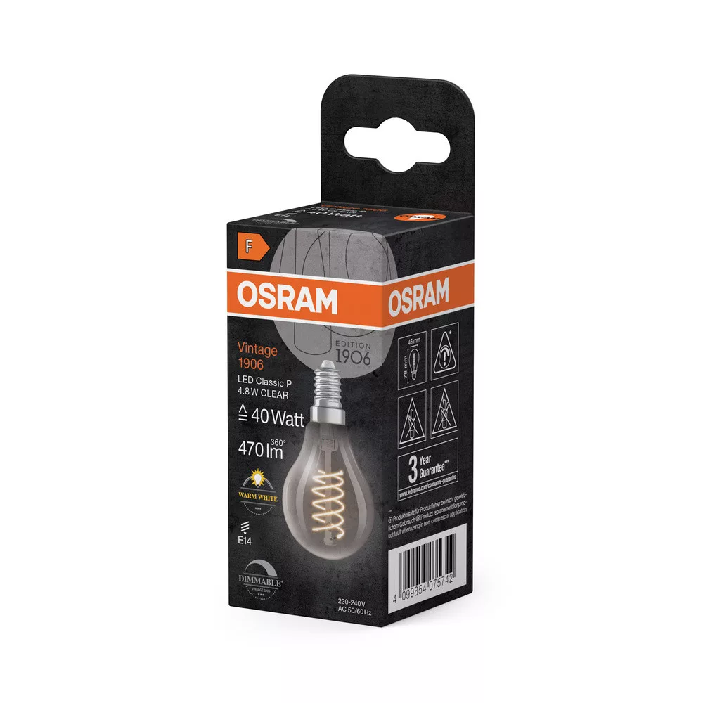 LED dekoratív izzó A45 E14 4,8 W = 40 W 470 lm 2700 K Meleg 320° Izzószálas, szabályozható fényerővel, Vintage 1906 Osram