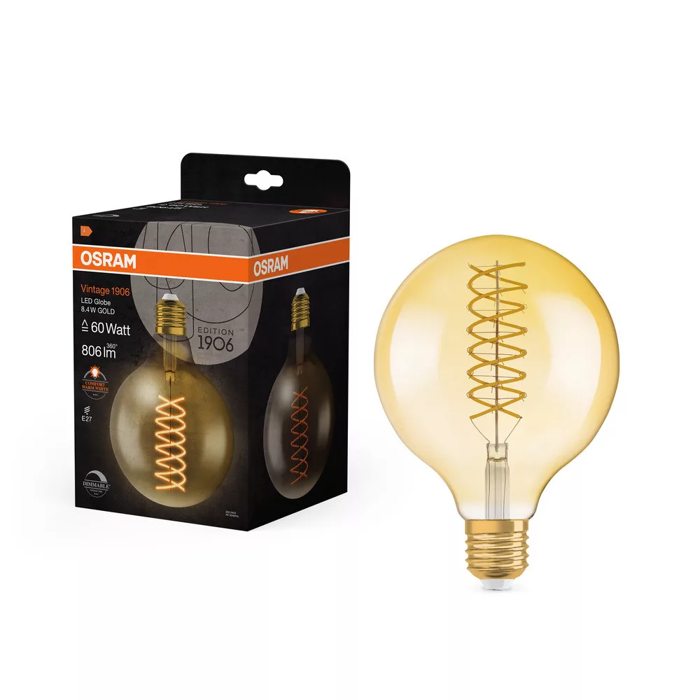 LED dekoratív izzó G125 gömb alakú E27 8.4W = 60W 806lm 2400K Meleg 300° Szabályozható Vintage 1906 Osram