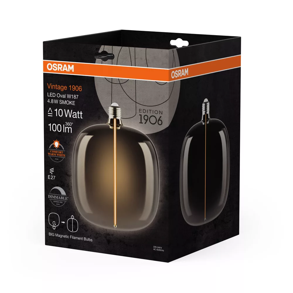 LED dekoratív izzó E27 4,8 W = 10 W 100 lm 1800 K Meleg 320° Füstölt, szabályozható fényerejű izzószálas Vintage 1906 Osram