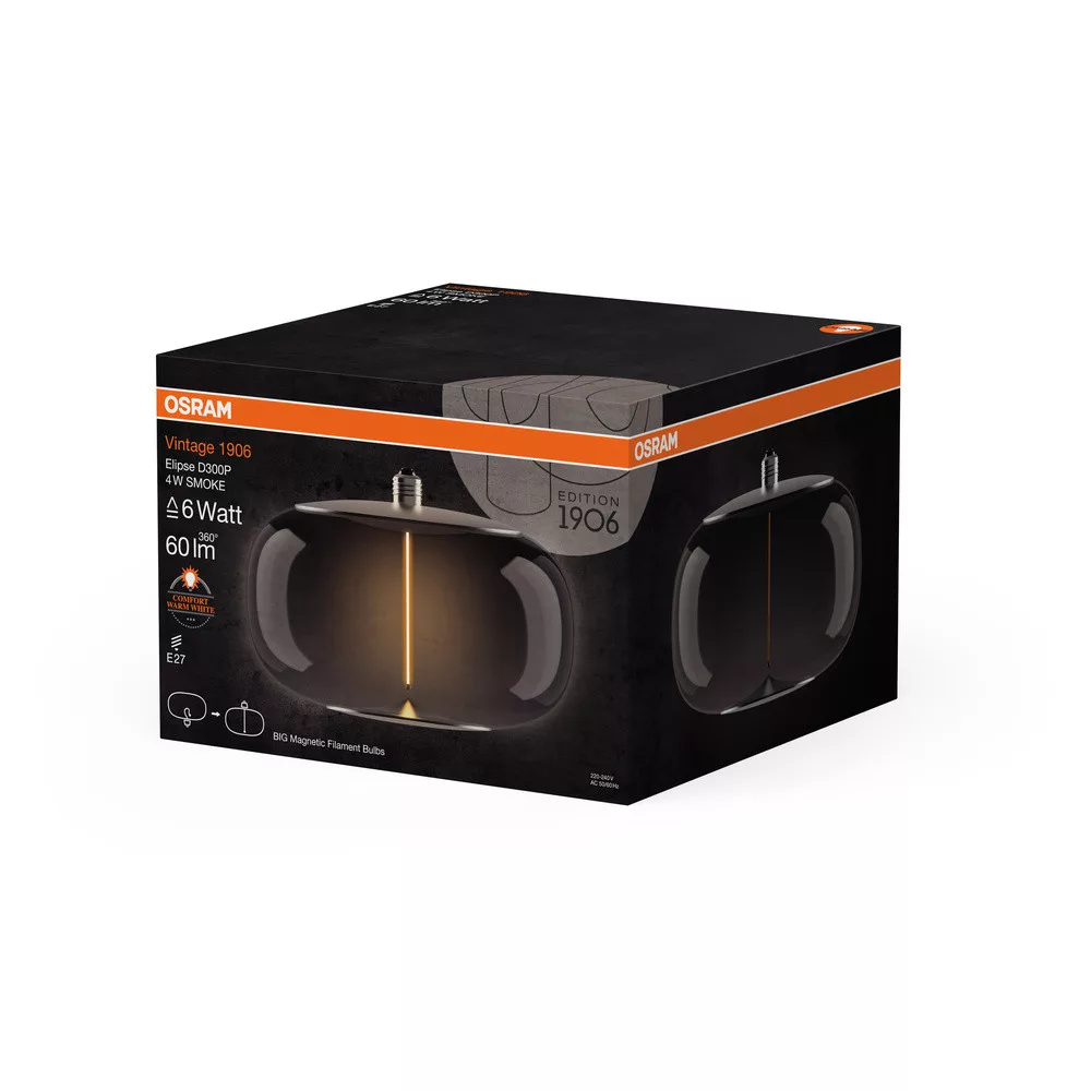LED dekoratív izzó E27 4W = 6W 60lm 1800K Meleg 320° Füstölt Izzószál Vintage 1906 Osram