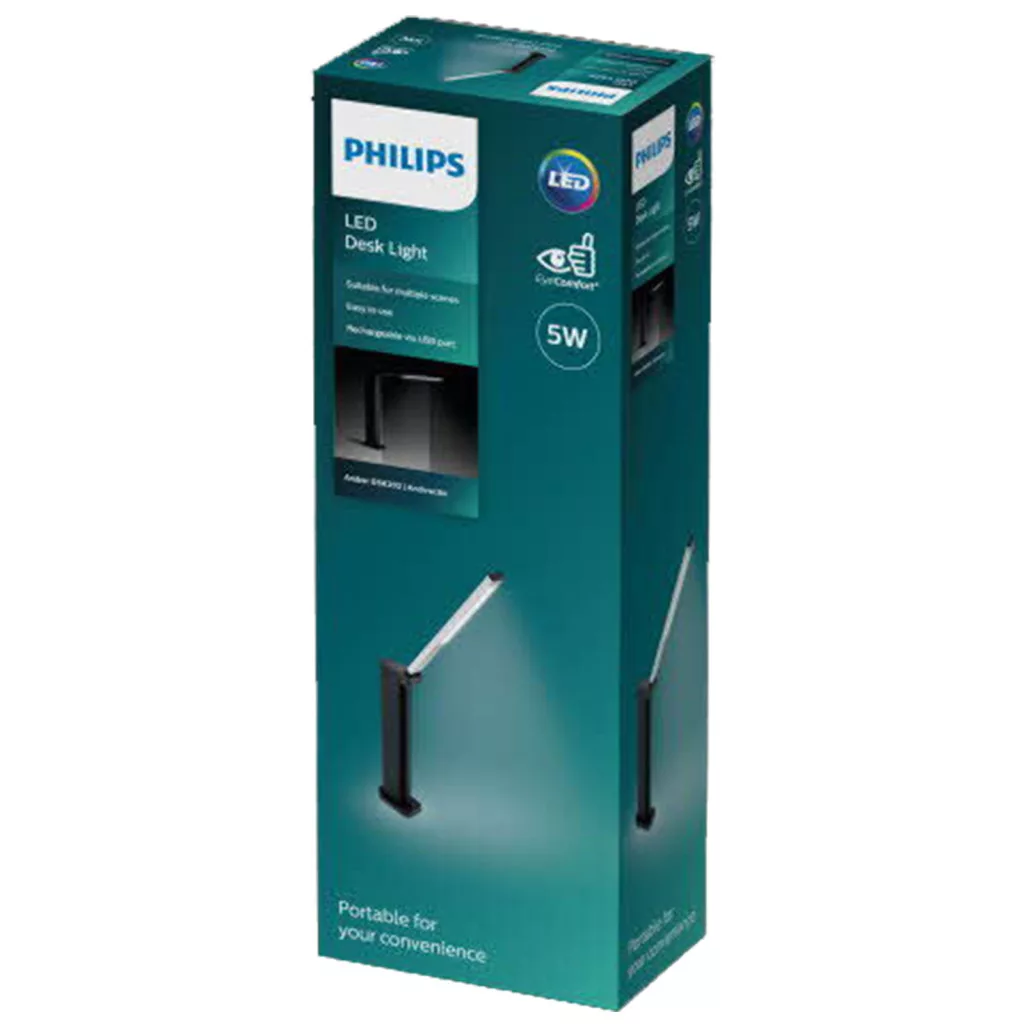 LED Asztali lámpa Asztal AMBER 5W 4000K Dimmelhető USB Fekete PHILIPS