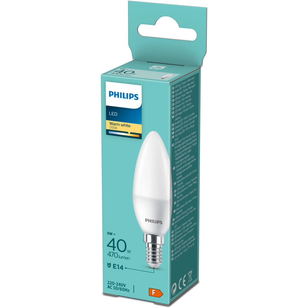 LED izzó E14 gyertya B35 4,9 W = 40 W 470 lm 2700 K Meleg Essential Philips