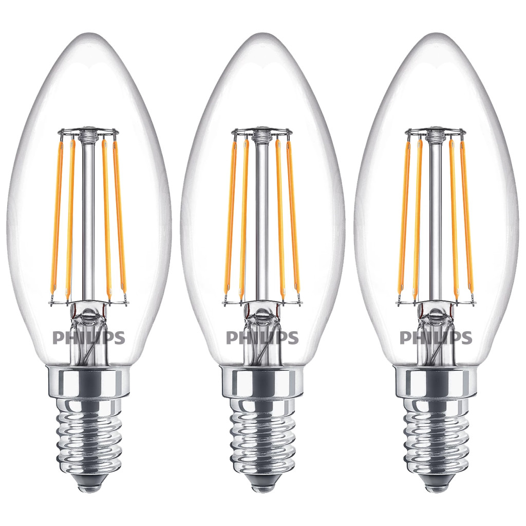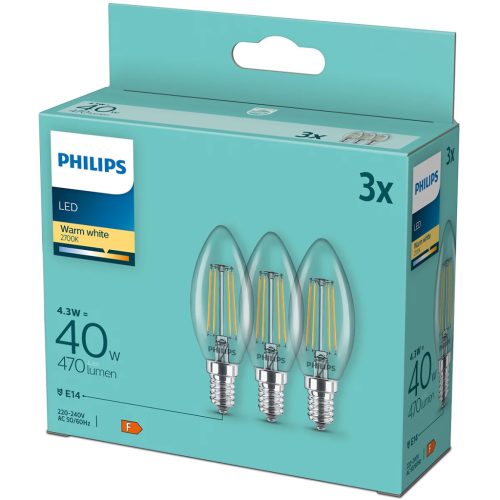 3x LED izzó E14 Candle B35 4,3W = 40W 470lm 2700K meleg FILAMENT Philips