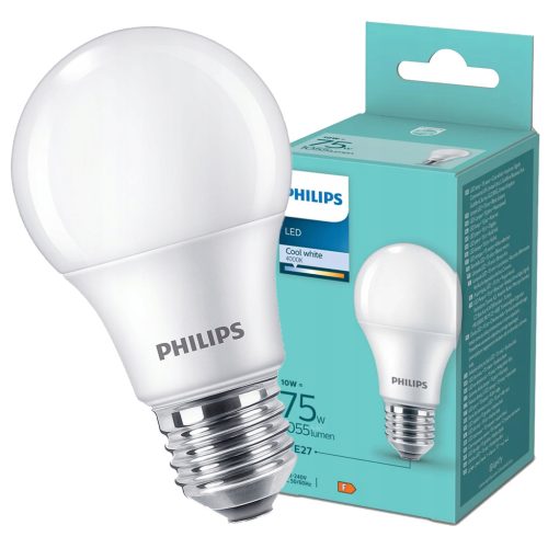 LED izzó E27 A60 10W = 75W 1055lm 4000K Semleges Milky PHILIPS