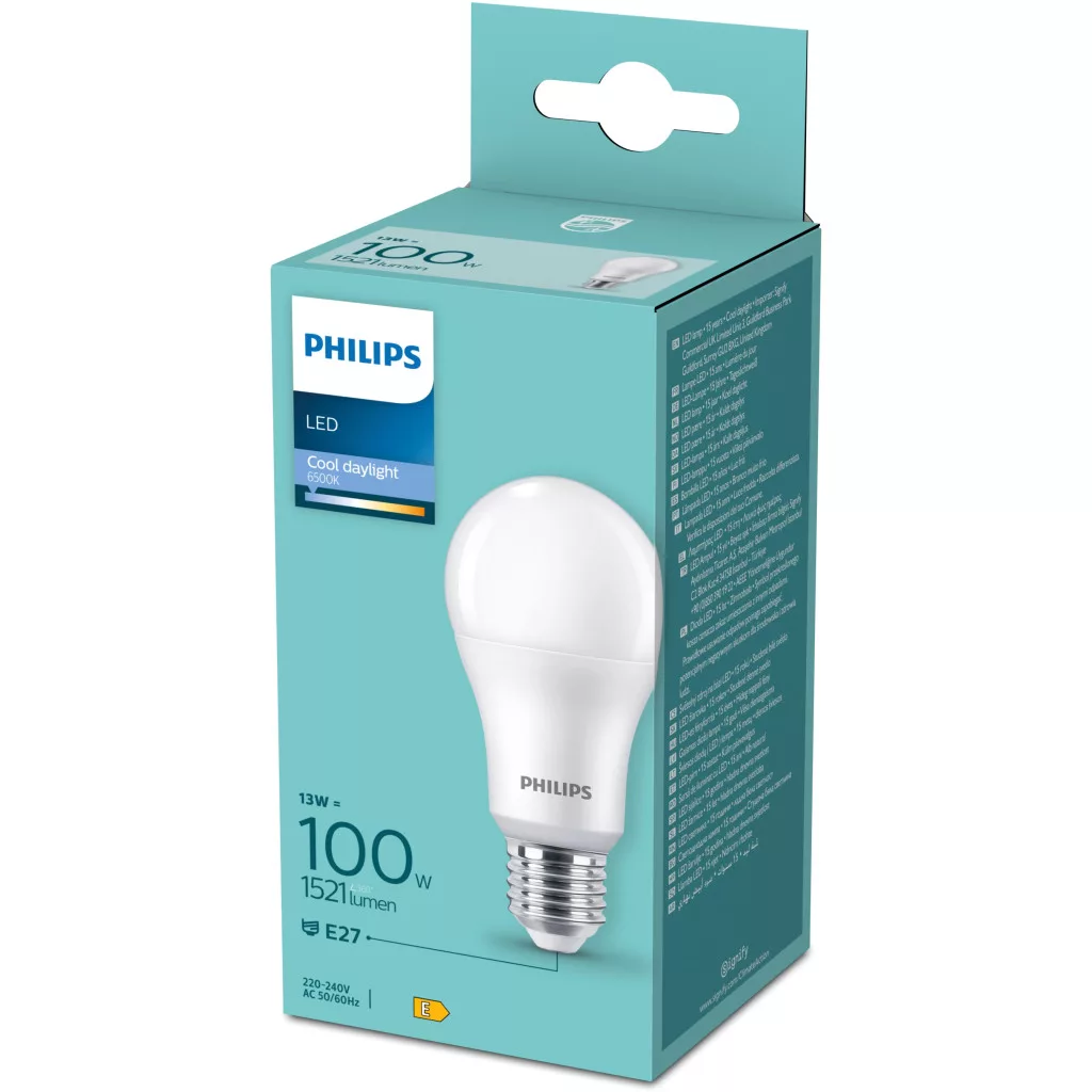 LED izzó E27 A60 13W = 100W 1521lm 6500K Hideg 180° Essential Philips