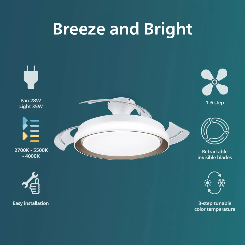 Mennyezeti lámpa Mennyezeti ventilátor LED 28+35W 4500lm 2700-5500K Gold Bliss Philips