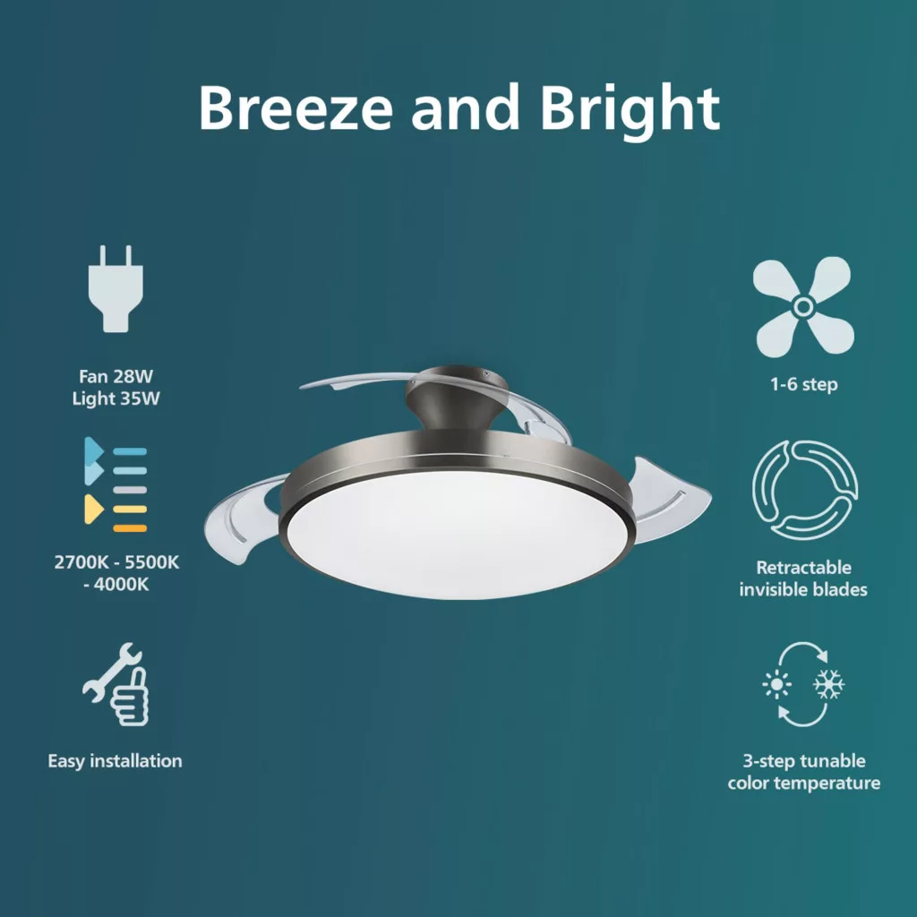 Mennyezeti lámpa Mennyezeti ventilátor LED 28+35W 4500lm 2700-5500K Nikkel Atlas Philips