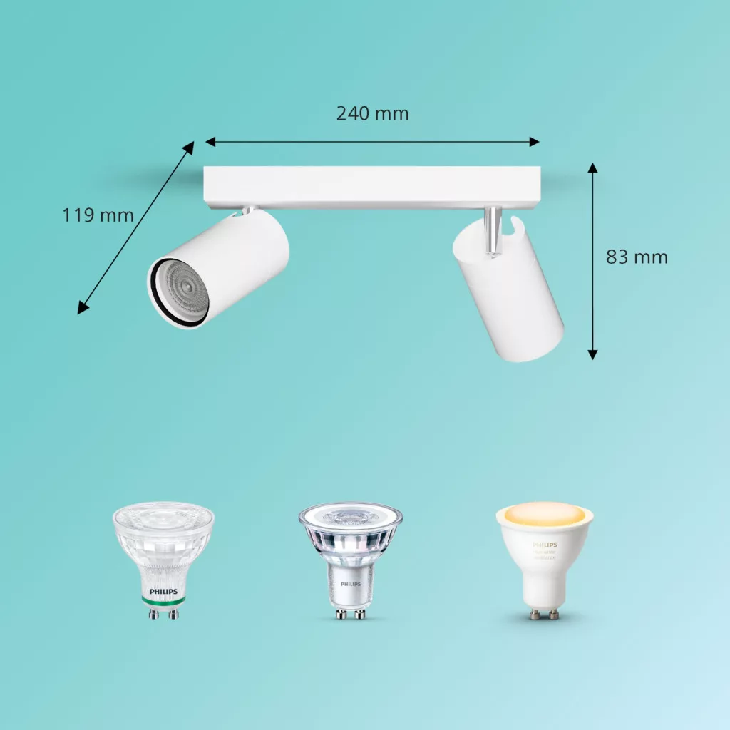 Mennyezeti lámpa Spotlámpa 2x GU10 IP44 Fehér Kosipo Philips