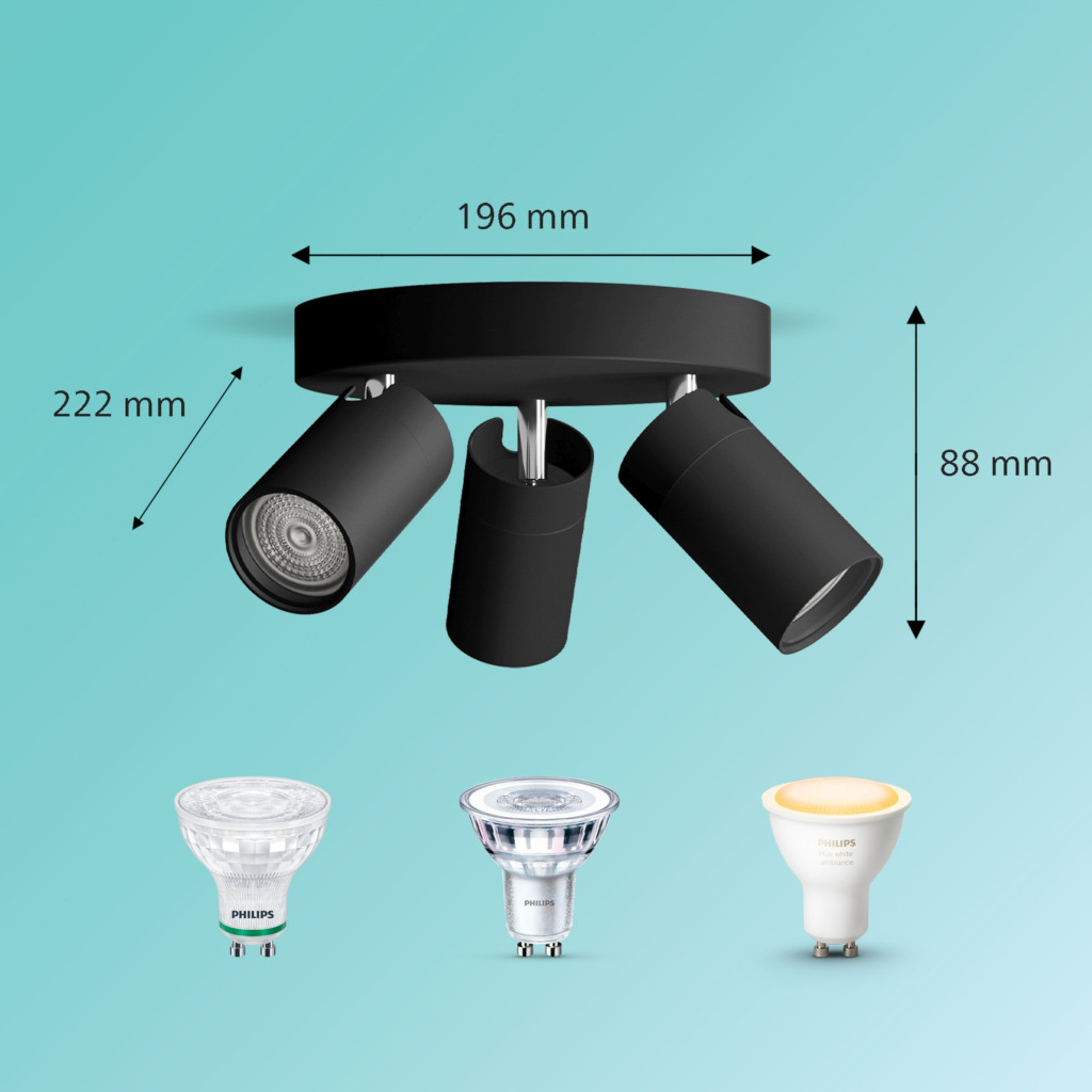 Mennyezeti lámpa Spotlámpa 3x GU10 IP44 Fekete Kosipo Philips
