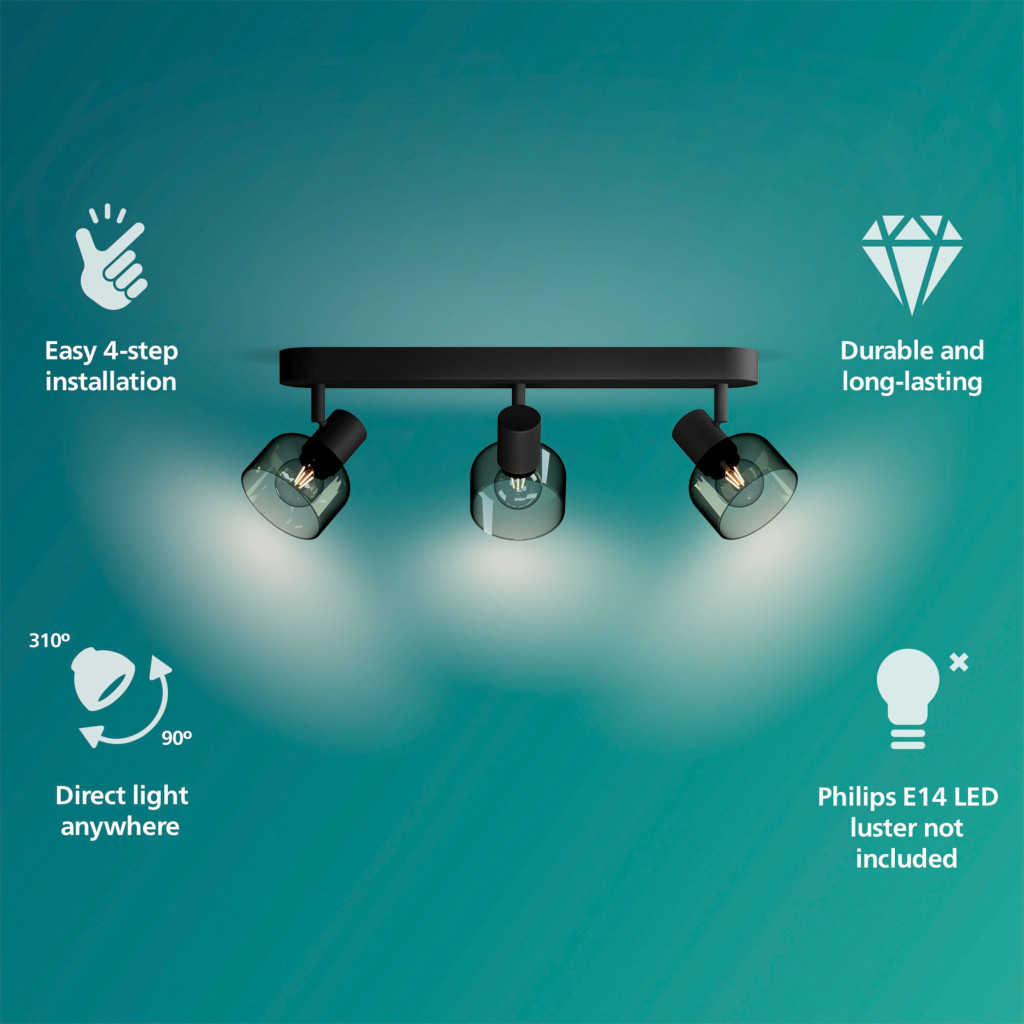 Mennyezeti lámpa Spotlámpa 3x E14 Black Sleet Philips