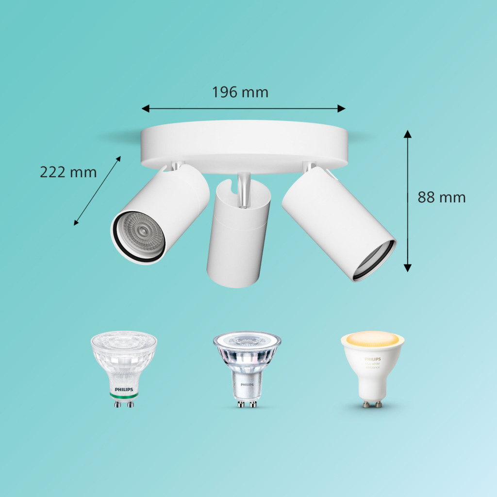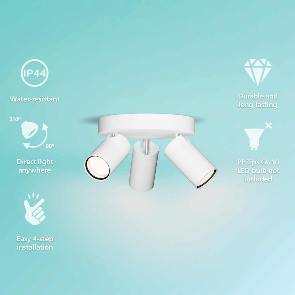 Mennyezeti lámpa Spotlámpa 3x GU10 IP44 Fehér Kosipo Philips