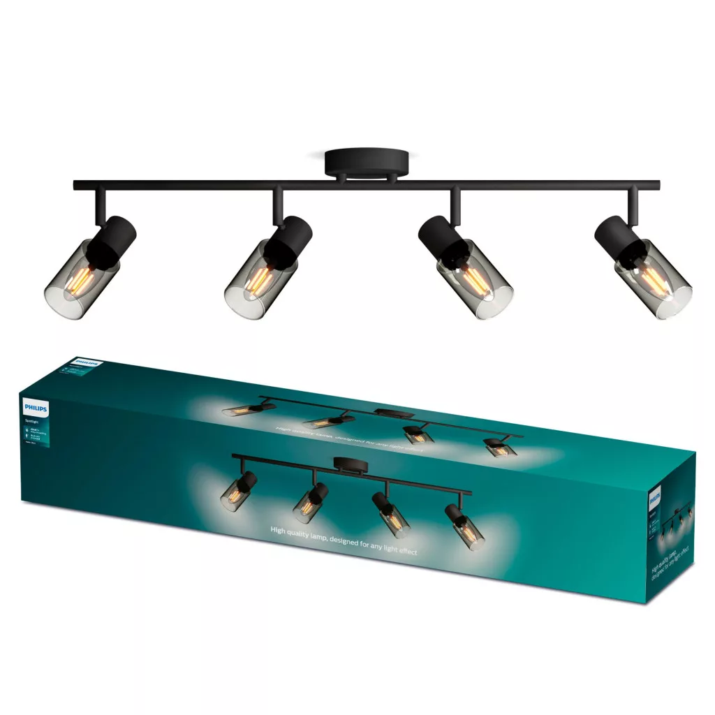 Mennyezeti lámpa spotlámpa 4x E14 Black Palms Philips