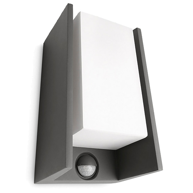 Kerti LED fali lámpa homlokzati HÍD myGarden E27 IP44 mozgásérzékelővel, négyszögletes antracit PHILIPS