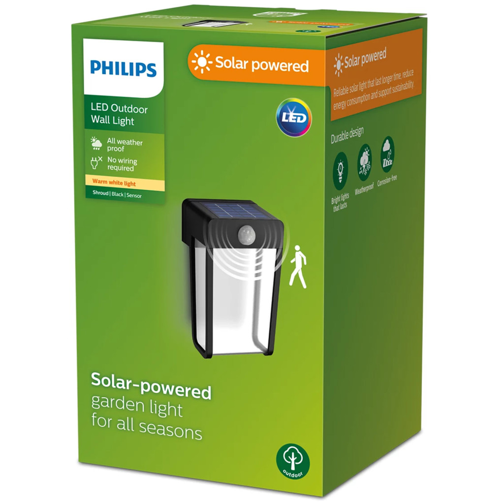 Kerti LED fali lámpa kültéri napelemes lámpa mozgásérzékelő 2700K IP44 PHILIPS