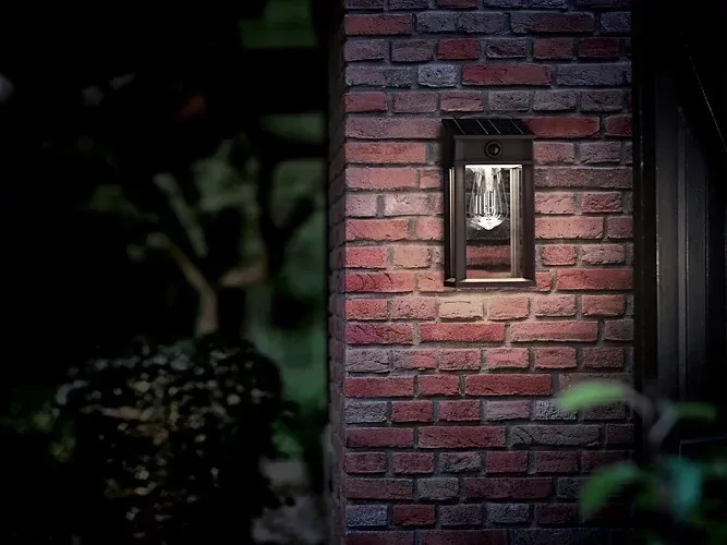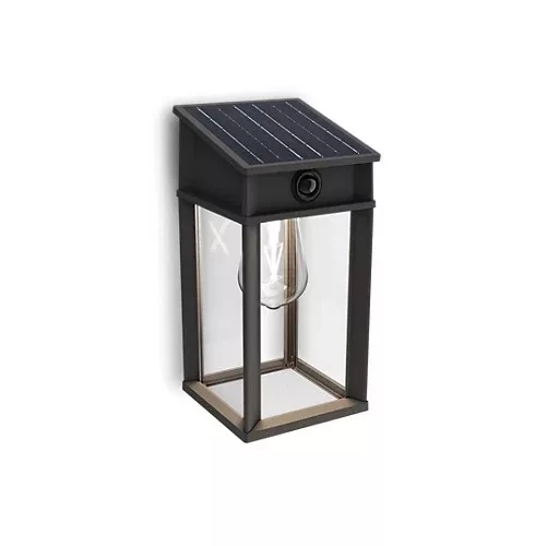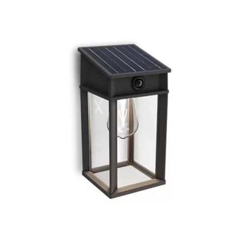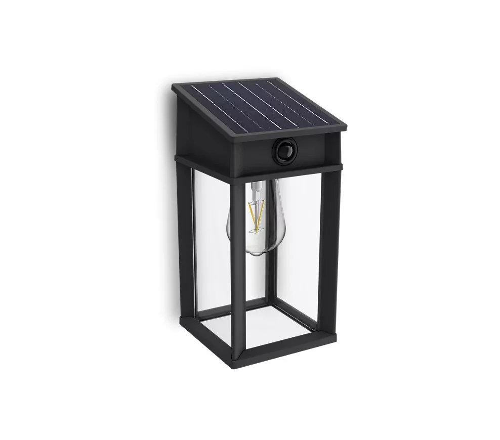Kerti fali lámpa, napelemes homlokzati kültéri LED, 3,2 W, 470 lm, 4000 K, IP44, mozgás- és alkonyérzékelővel, Geri, ultrahatékony, fekete, Philips