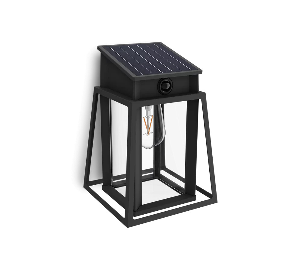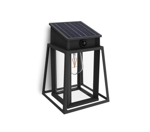 Kerti fali lámpa, napelemes homlokzati kültéri LED, 3,2 W, 470 lm, 2700 K, IP44, mozgás- és alkonyérzékelővel, fekete, Lysin, ultrahatékony, Philips