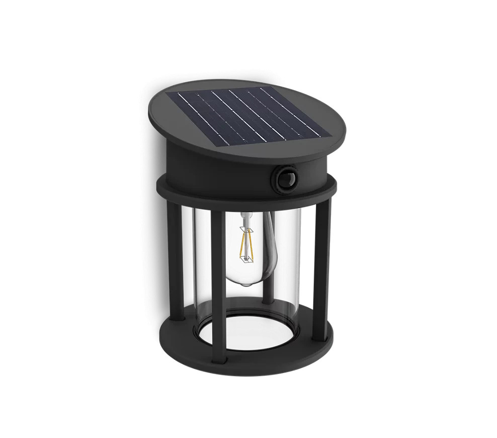 Kerti fali lámpa, napelemes homlokzati kültéri LED, 3,2 W, 470 lm, 4000 K, IP44, mozgás- és alkonyérzékelővel, fekete, Geri, ultrahatékony, Philips