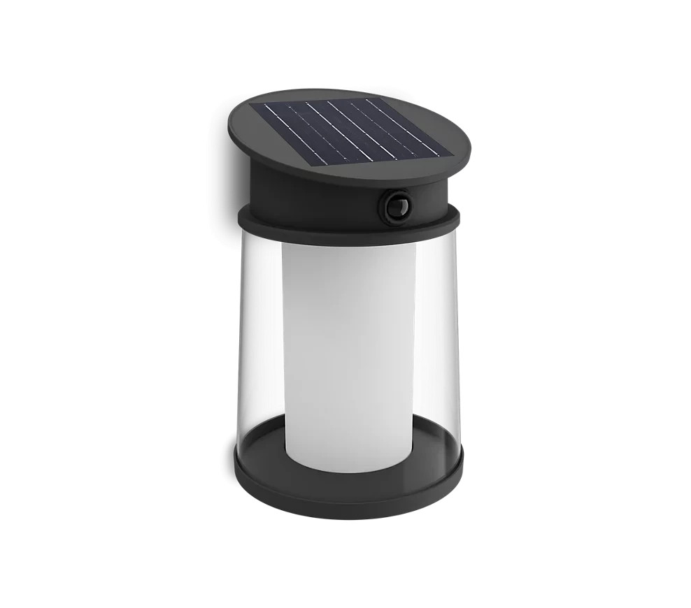 Kerti fali lámpa, napelemes homlokzati kültéri LED, 3,2 W, 470 lm, 2700 K, IP44, mozgás- és alkonyérzékelővel, fekete, Juda Ultra Efficient, Philips