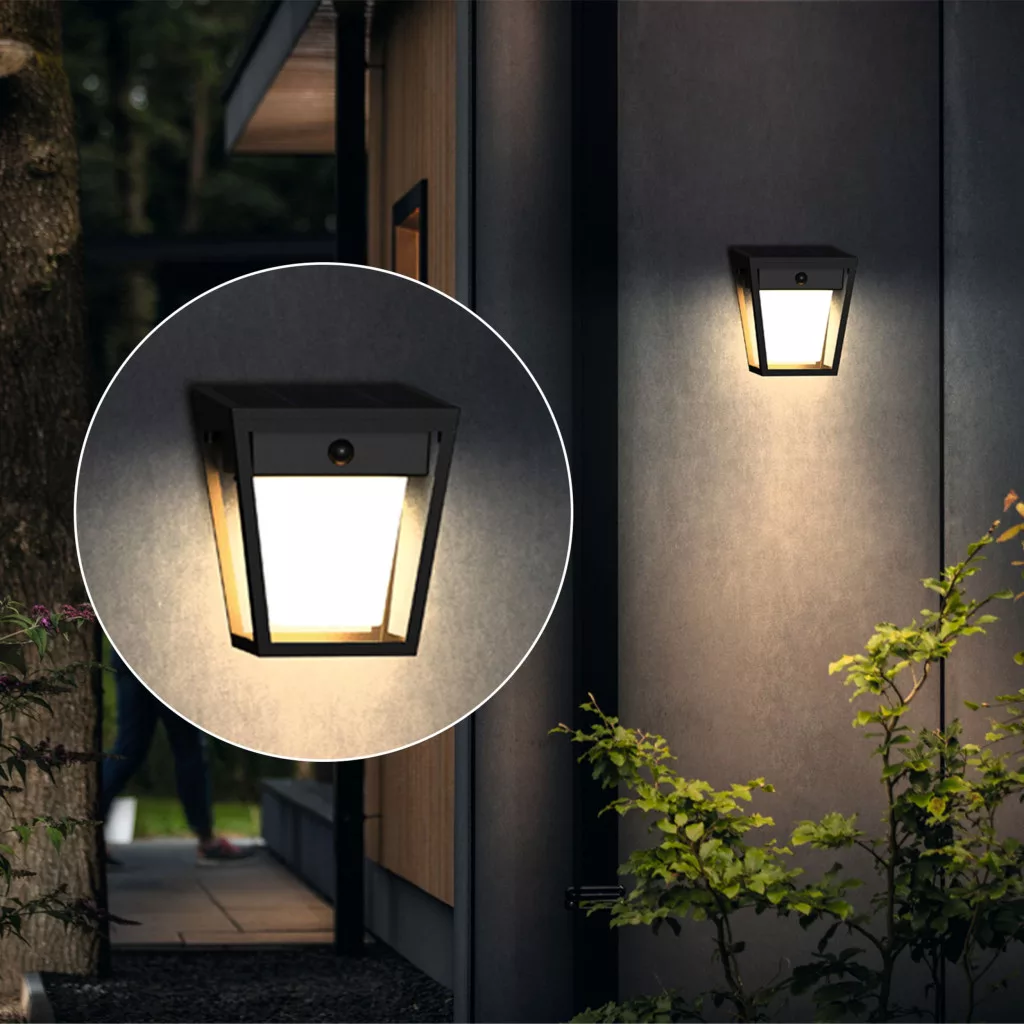 Kerti fali lámpa Solar Homlokzati Kültéri LED 1,8W 250lm 3000K IP44 mozgás- és szürkületérzékelővel Fekete Nissa Ultra Hatékony Philips