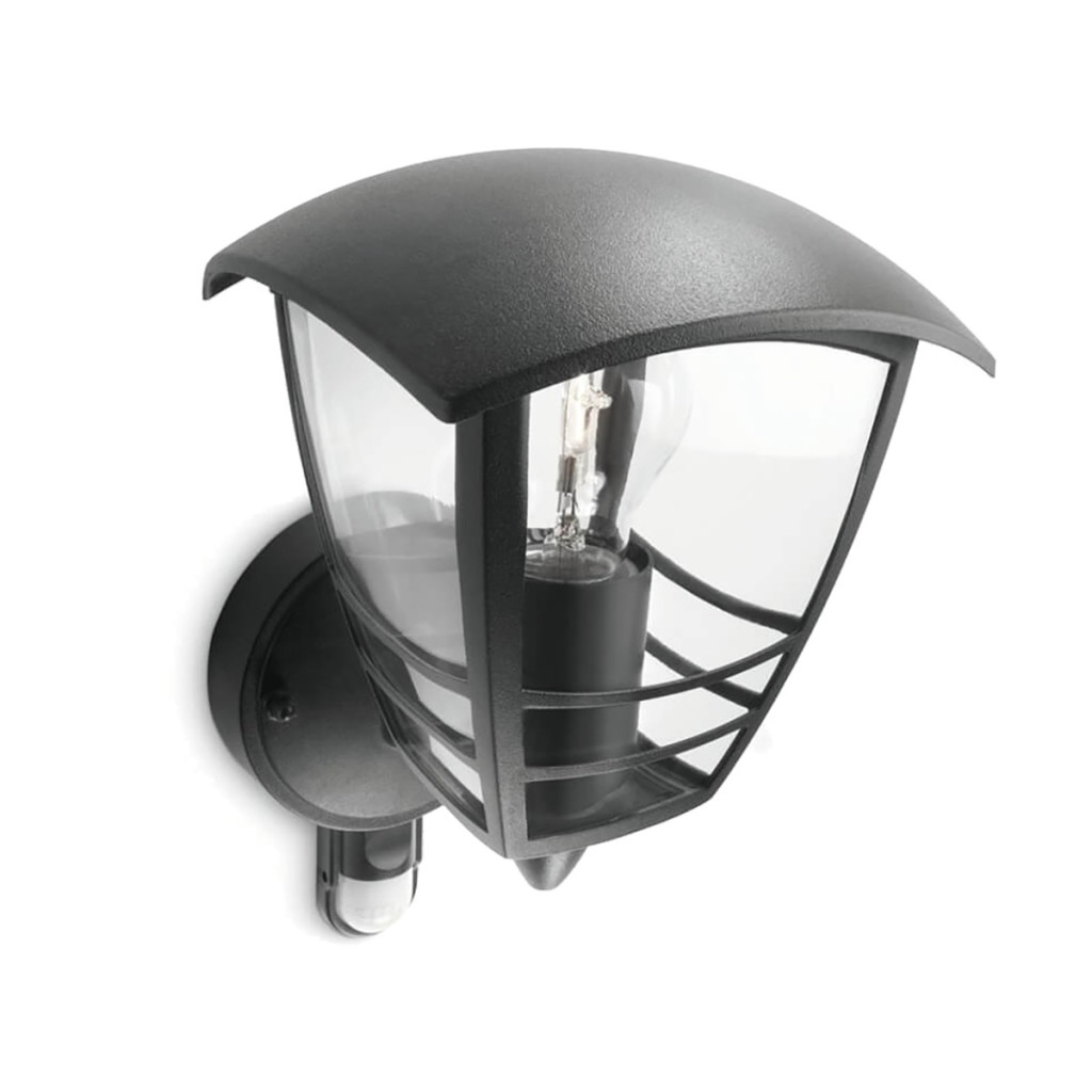 Kerti LED fali lámpa CREEK myGarden E27 IP44 homlokzati lámpa mozgásérzékelővel Fekete PHILIPS