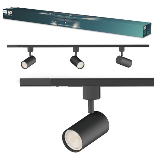 Philips EasyLink Zilo mennyezeti lámpa készlet 1 m + 3 db GU10 LED sínre szerelhető reflektor, egyfázisú, fekete