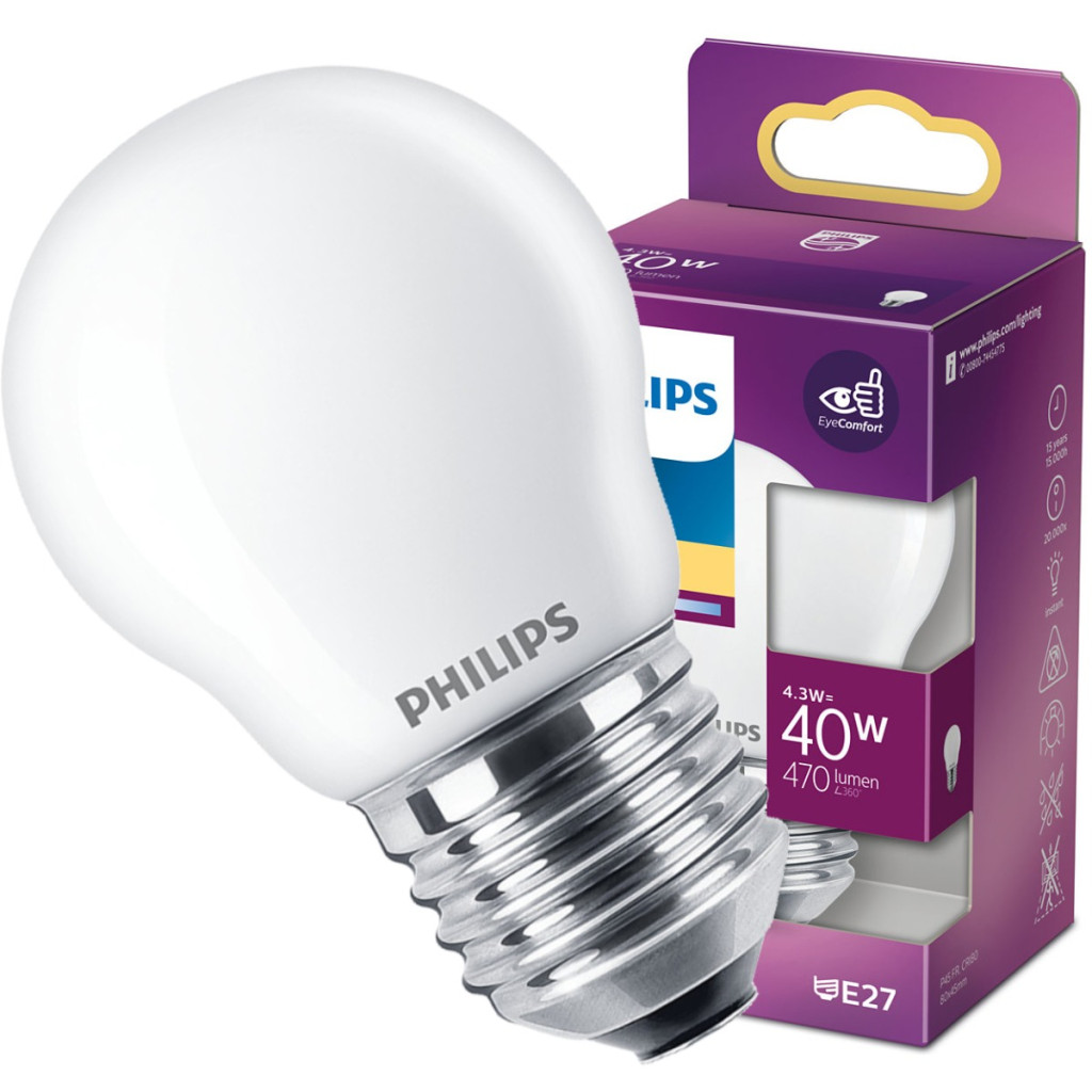 LED izzó E27 P45 4,3W = 40W 470lm 2700K meleg PHILIPS