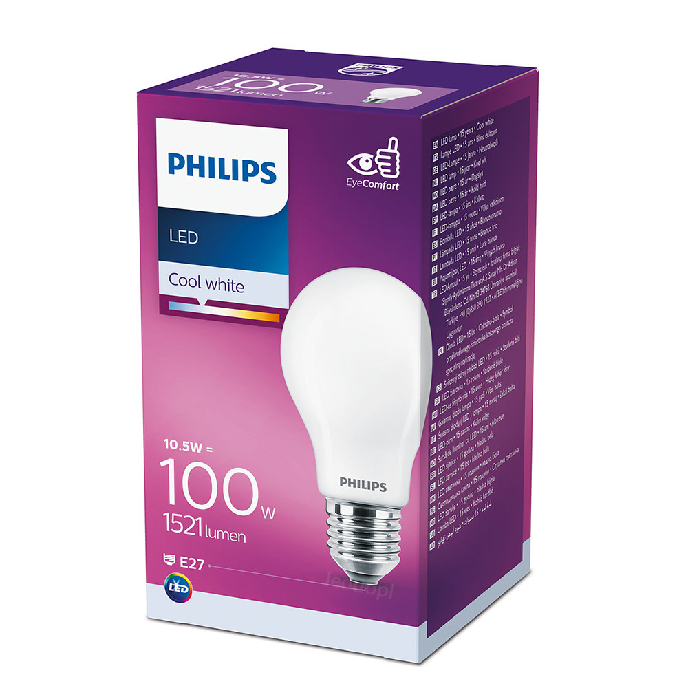 LED izzó E27 A60 10.5W = 100W 1521lm 4000K Semleges 300° PHILIPS Classic