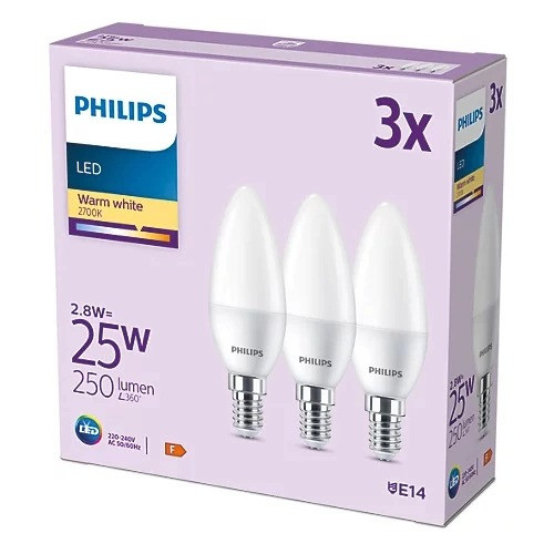 3 db LED-es gyertyakörte készlet E14 B35 2,8W = 25W 250lm 2700K meleg matt PHILIPS