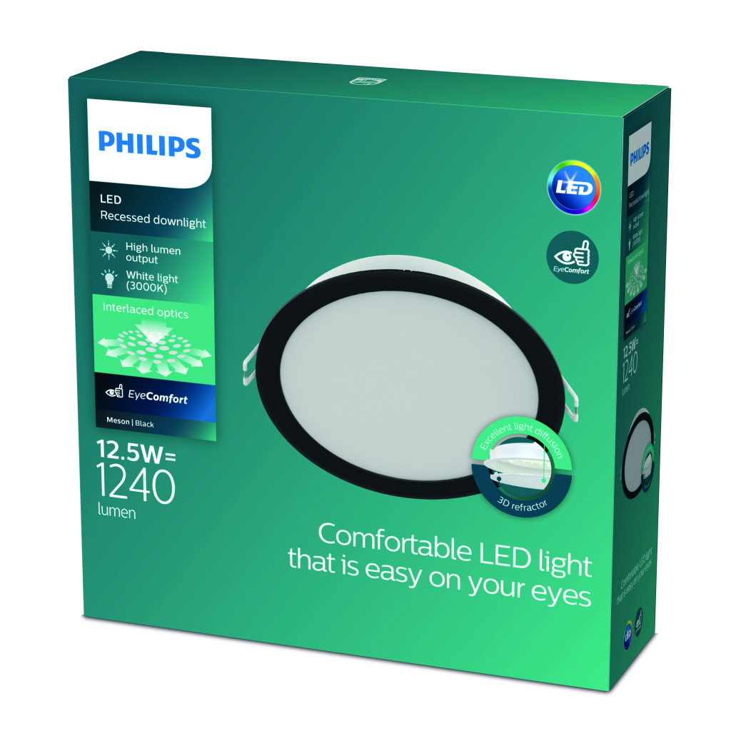 LED Panel Süllyesztett LED Lámpatest 12.5W 1240lm 3000K Fekete Meson Philips