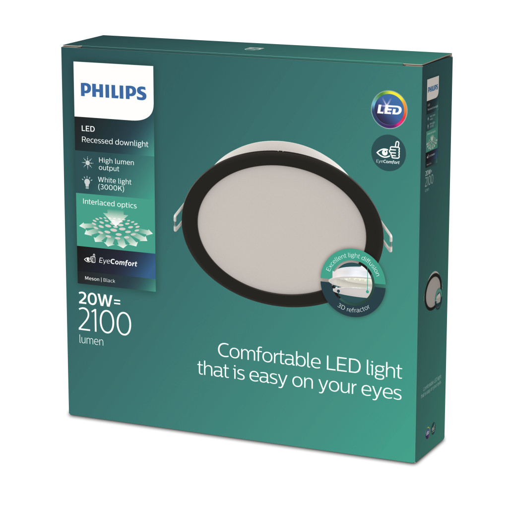 LED Panel Süllyesztett LED Lámpatest 20W 2100lm 3000K Fekete Meson Philips