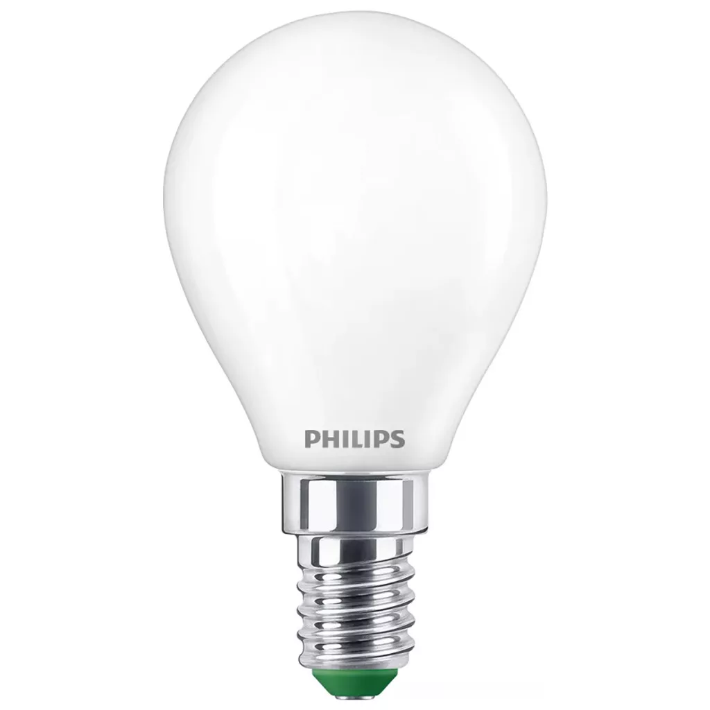 LED izzó E14 gömb alakú P45 2,3 W = 40 W 485 lm 210 lm/W 2700 K Meleg 300° A OSZTÁLYÚ UltraEfficient Philips