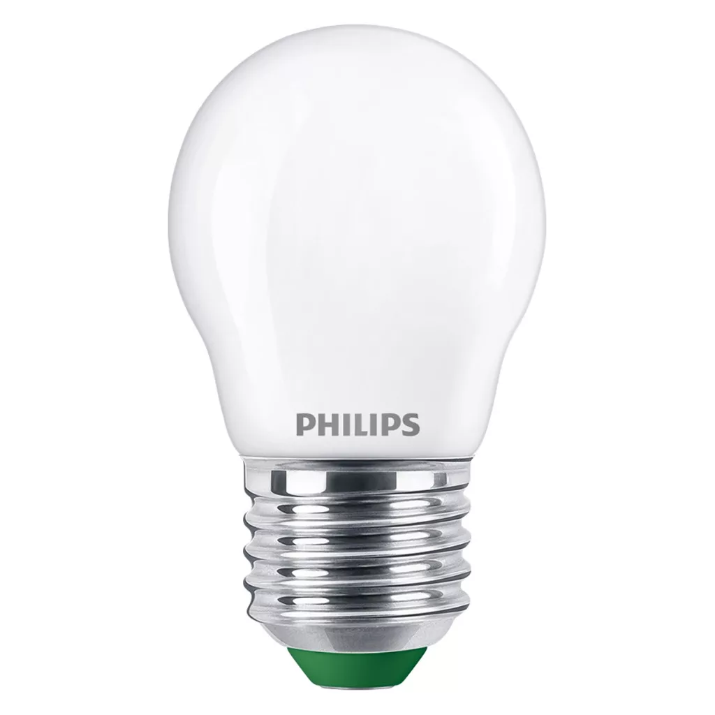 LED izzó E27 gömb alakú P45 2,3 W = 40 W 485 lm 210 lm/W 2700 K Meleg 300° A OSZTÁLYÚ UltraEfficient Philips