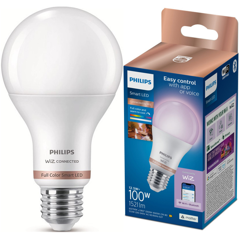 LED izzó E27 A60 12,5 W = 100 W 1521 lm 2200-6500 K RGB + TW Intelligens SMART WiFi Bluetooth WiZ alkalmazás Philips