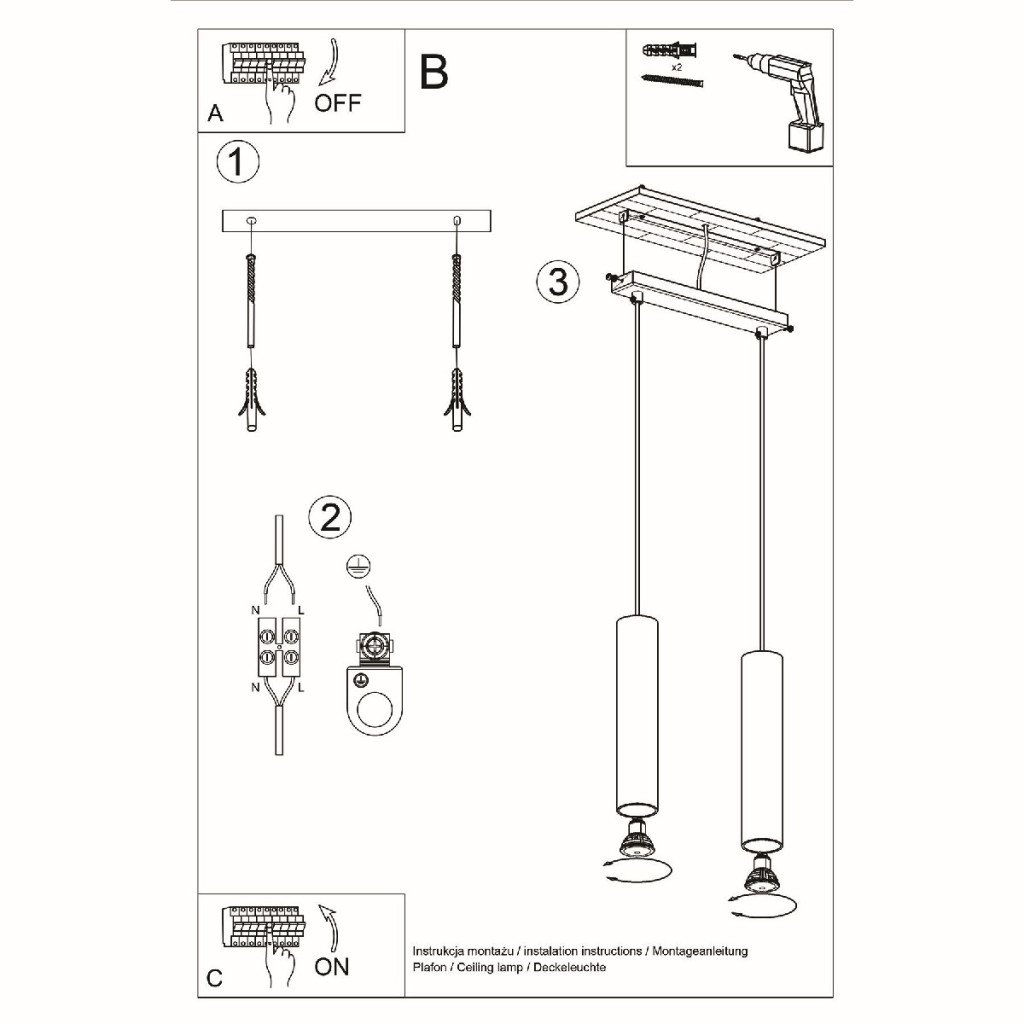 LAGOS 2 Függesztett mennyezeti lámpa 2xGU10 Minimalista Fekete SOLLUX