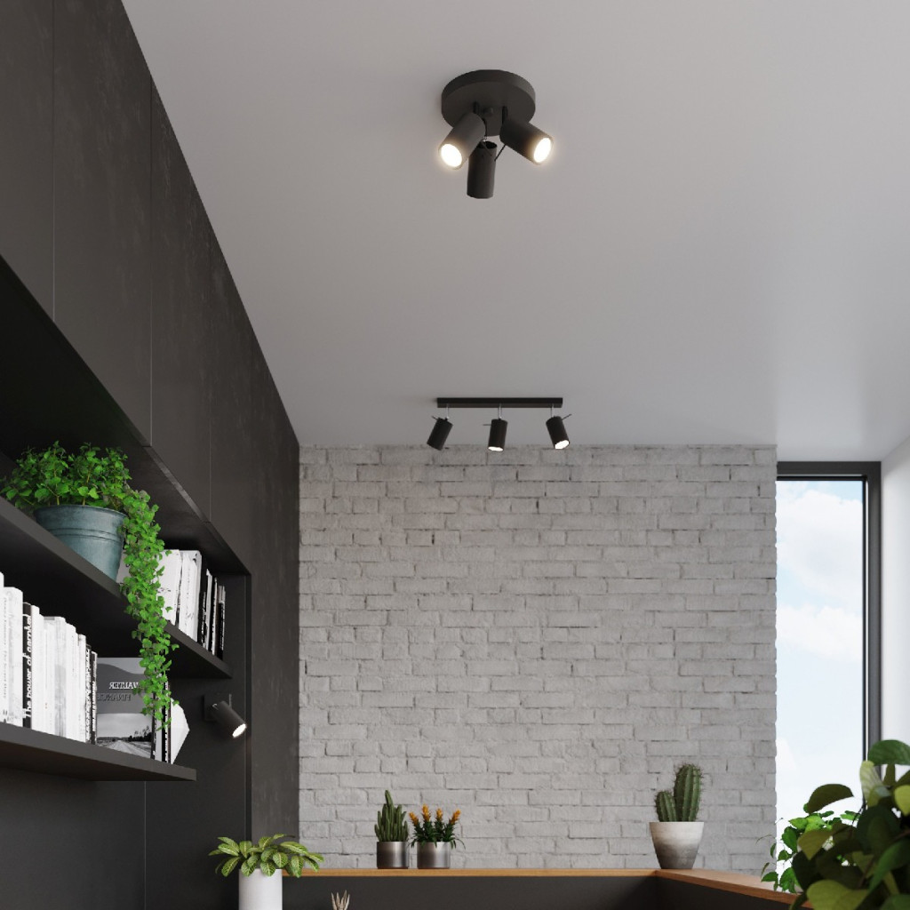 RING mennyezeti lámpa 3xGU10 Reflektor mozgatható halogén lámpatest fekete SOLLUX