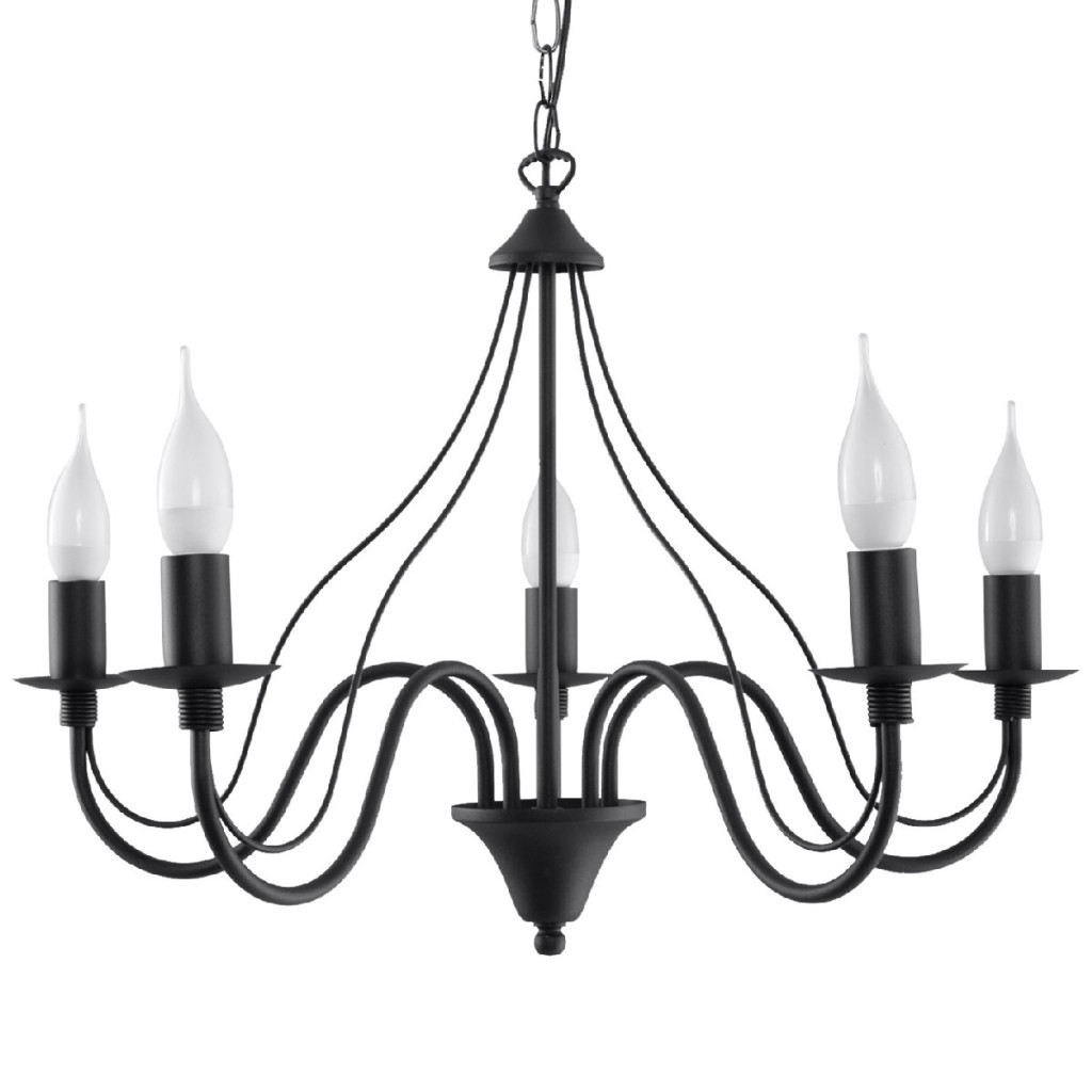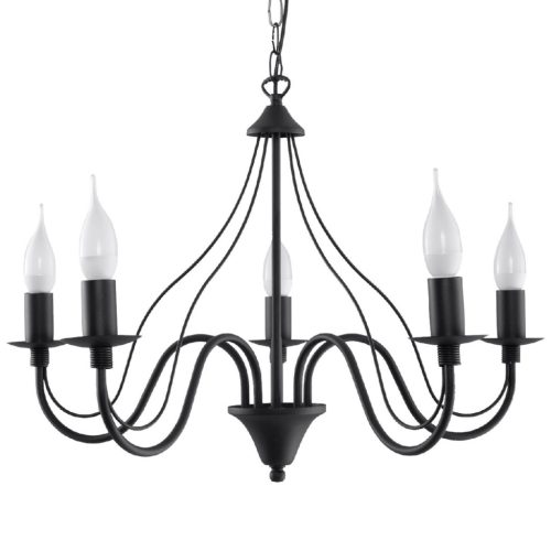 MINERWA 5 függesztett mennyezeti lámpa 5xE14 hagyományos fekete csillár SOLLUX