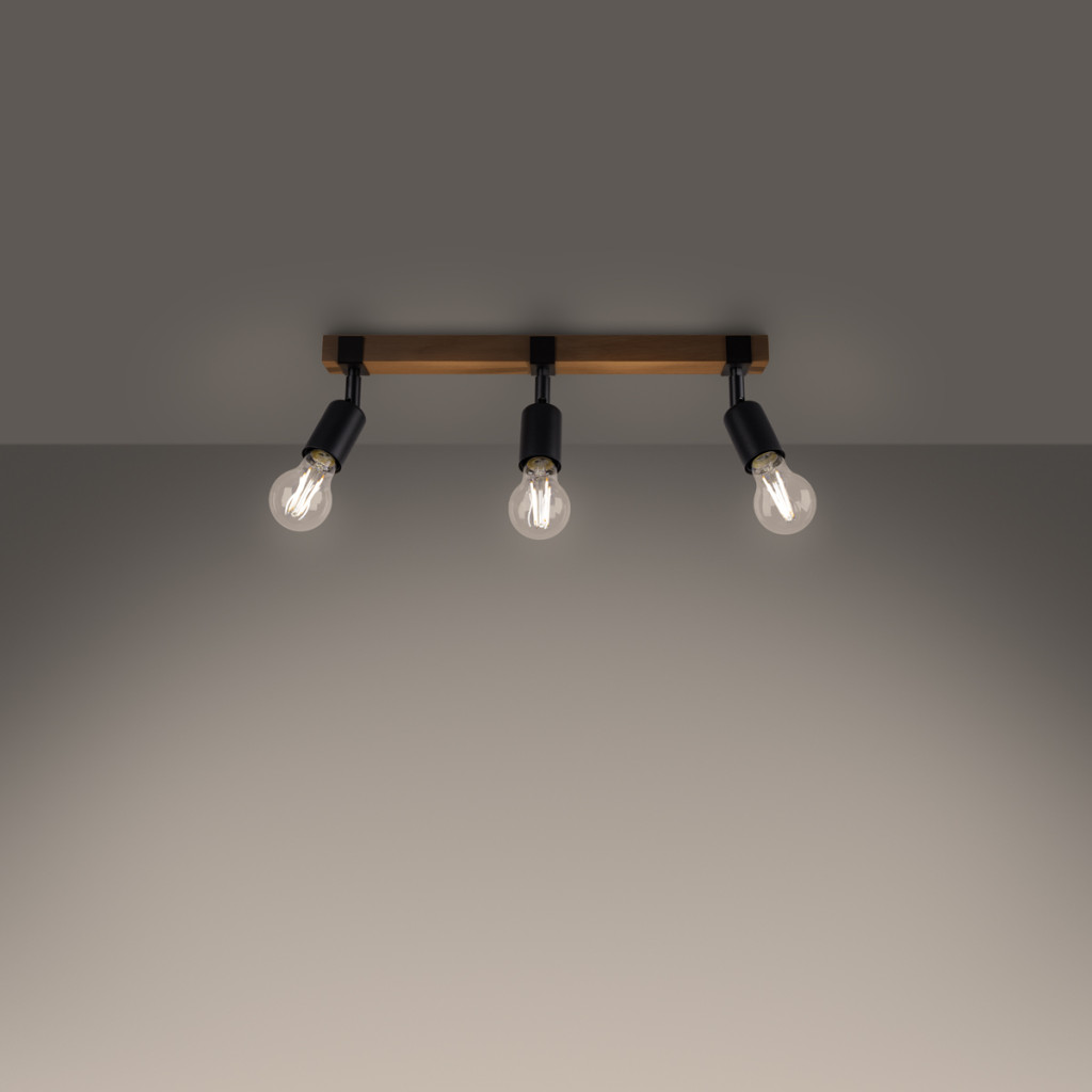Mennyezeti lámpa ZUCA 3 3xE27 Fekete Fa Modern SOLLUX