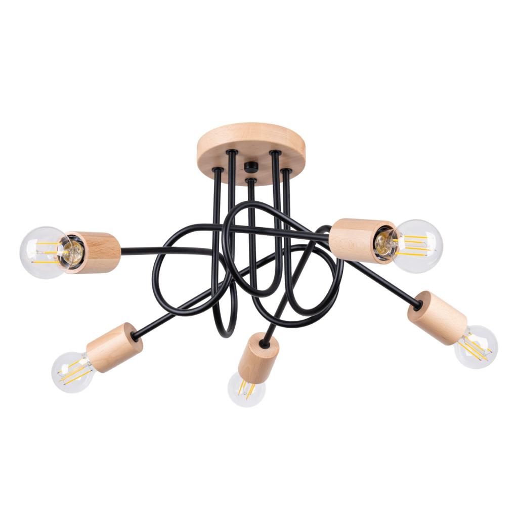 Pók csillár mennyezeti lámpa 5x E27 natúr fa fekete parázs barack puff SL.1478 Sollux