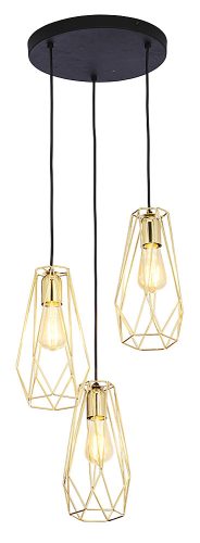LUGO GOLD függő mennyezeti lámpa csillár fekete és arany loft 3xE27 2697 TK világítás