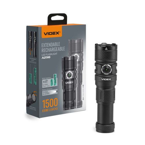 Újratölthető LED kézi zseblámpa 10W 1500lm 6 üzemmód USB-C vízálló IP66 Videx