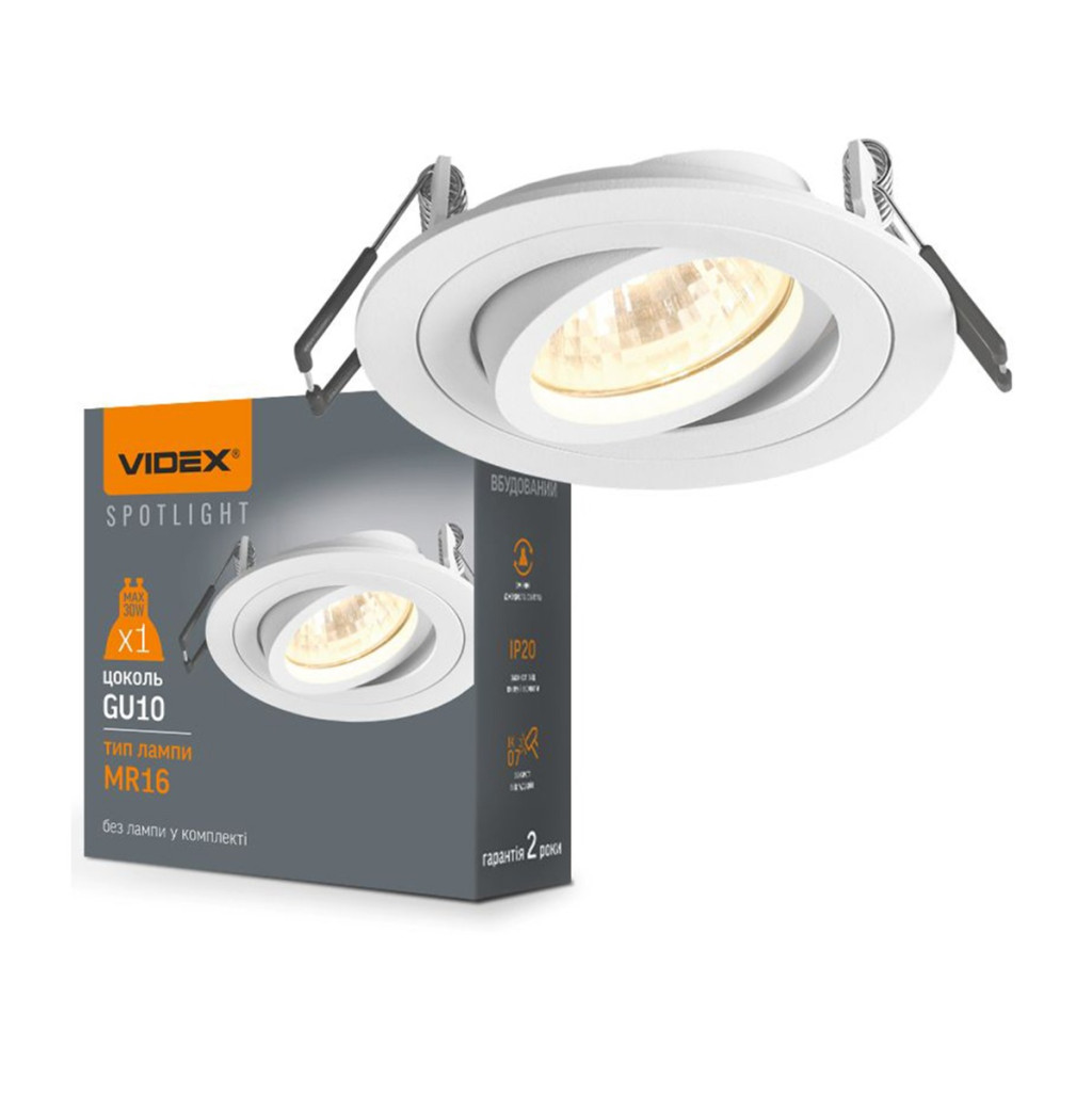 Süllyesztett mennyezeti lámpatest, halogén GU10, Videx, fehér, kerek, mozgatható