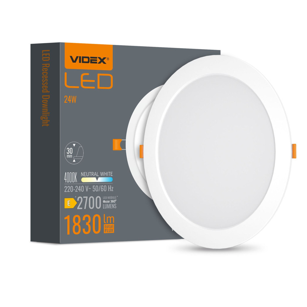 LED panel süllyesztett lámpatest 24W 2700lm 4000K semleges fehér Videx