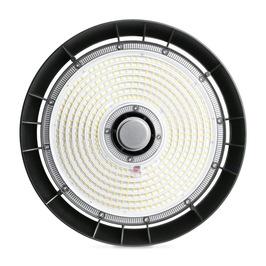 LED ipari magasbalátó lámpa 200W 32600lm 5000K semleges 90° fekete függeszték IP65 Videx