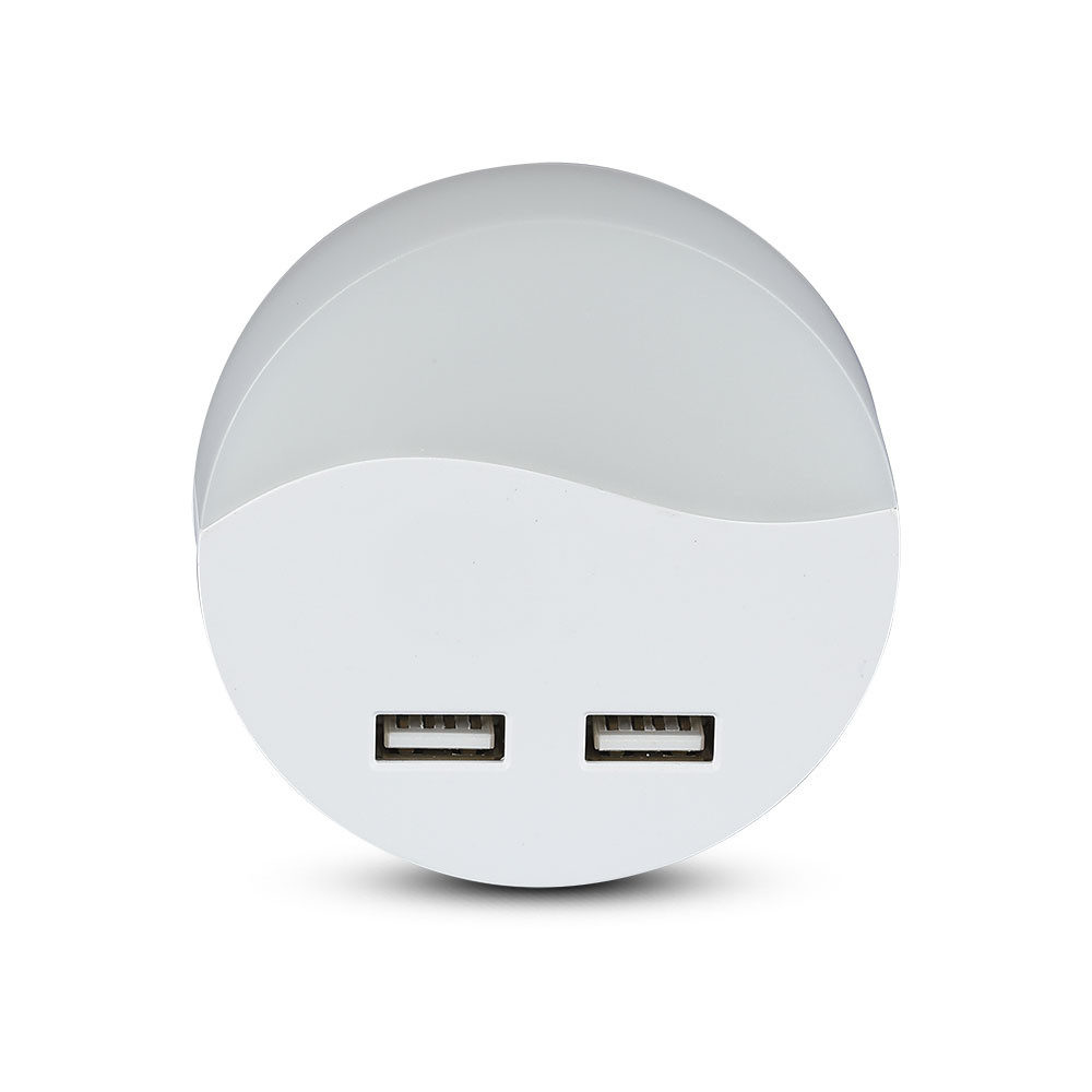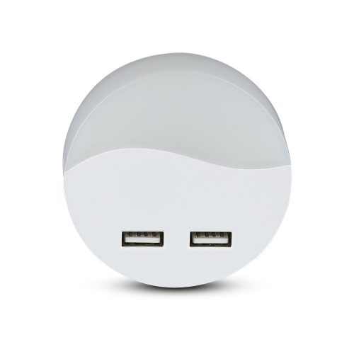 Tájoló lámpa LED éjszakai lámpa 0,45W 3000K Alkonyat érzékelővel és USB porttal Kerek Fehér Samsung Chip VT-84 V-TAC