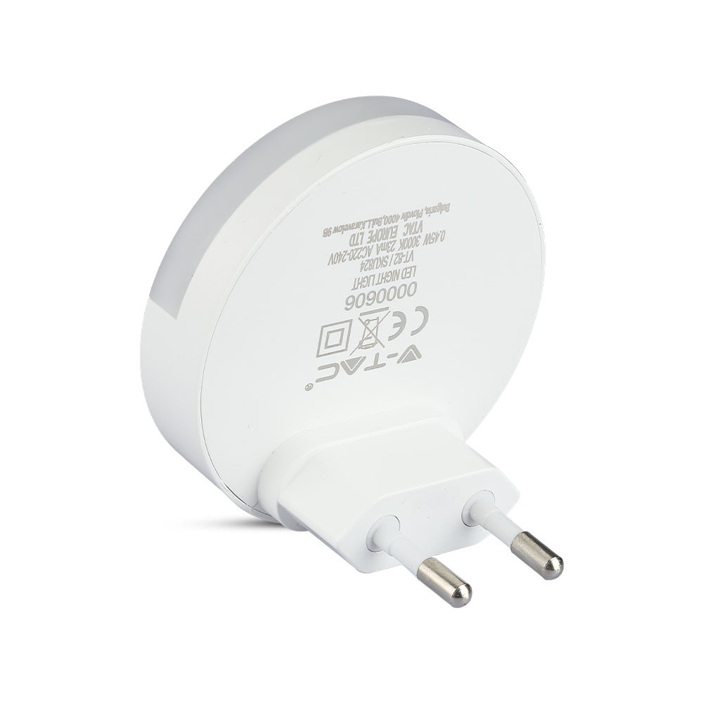 Tájoló lámpa LED éjszakai lámpa 0,45W 4000K Alkonyatérzékelővel Kerek Fehér Samsung Chip VT-82 V-TAC
