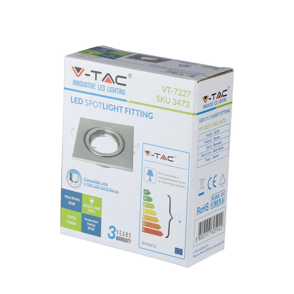 Süllyesztett mennyezeti lámpatest GU10 négyzet alakú szatén nikkel VT-7227 V-TAC